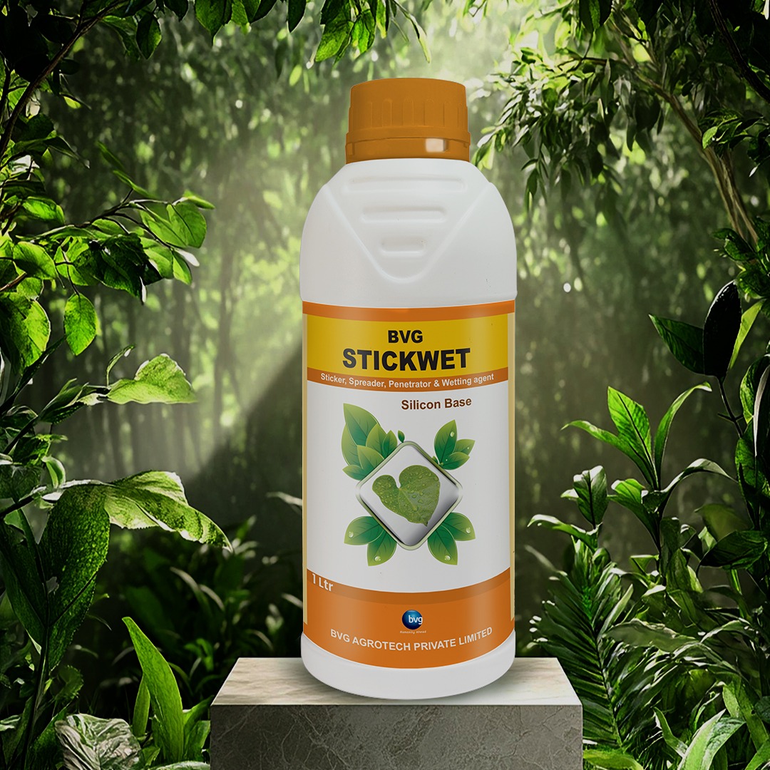 BVG StickWet Spreader that reduces surface tension of water, so that the added organic or chemical molecule will dissolve properly in the water and will spread evenly on plant leaf surface. It will also give proper molecule coverage on leaf surface and the formulation will remain on leaf for a longer time without washing out.